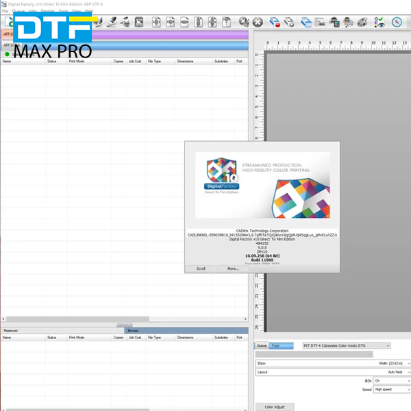 Rip-Software CADlink Digital Factory V11, spezielle Version für den DTF-Druck. Erhalten Sie volle Kontrolle über das Bild, um einen hochwertigen Druck zu erzielen, indem der Druckprozess maximal optimiert wird.